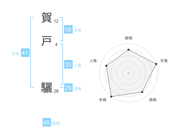 賀戸 驪さんの総格は45画の4点!