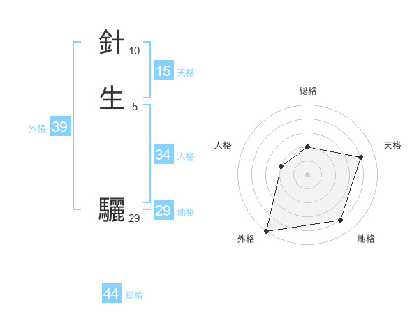 針生 驪さんを姓名の画数から五運を鑑定