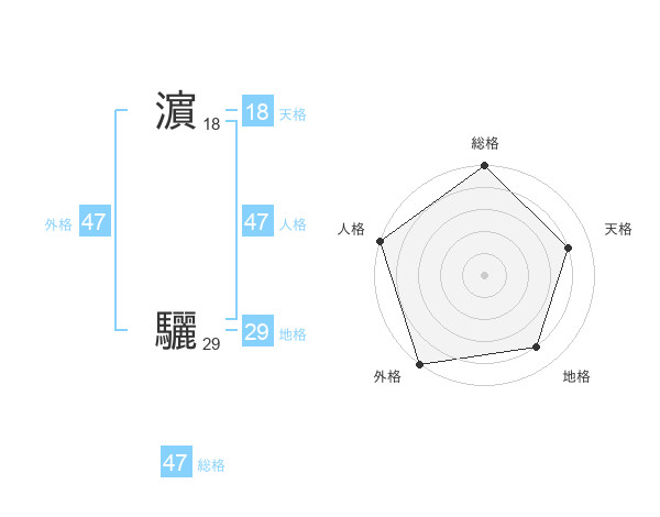 濵 驪さんの総格は47画の5点!
