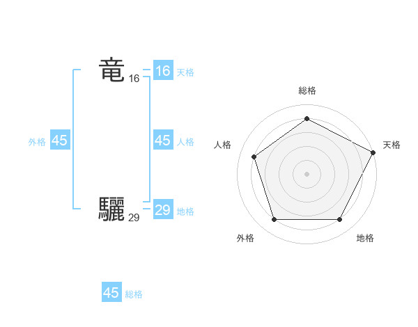 竜 驪さんの総格は45画の4点!