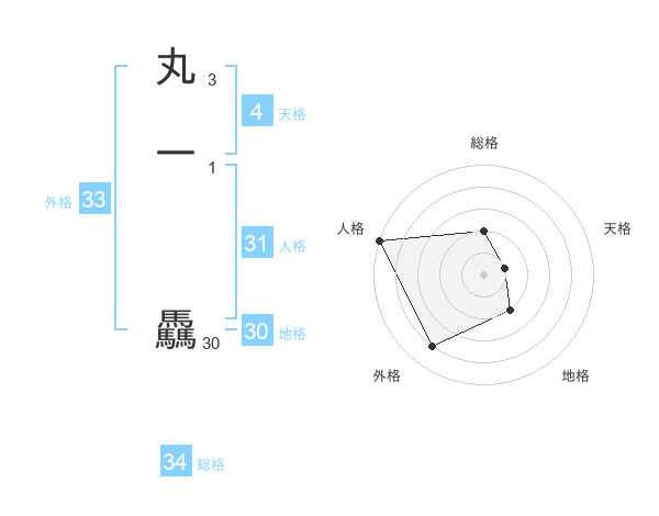 丸一 驫さんの外格は33画の4点!