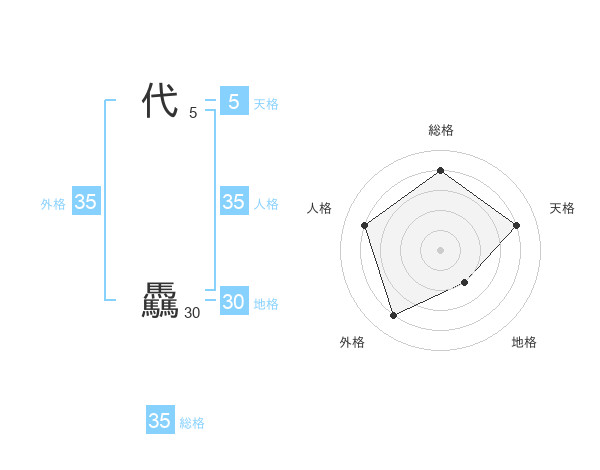 代 驫さんの外格は35画の4点!