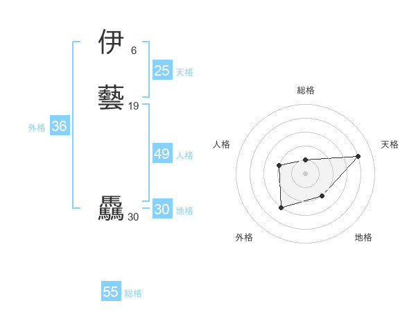 伊藝 驫さんの総格は55画の1点!