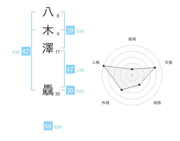 八木澤 驫さんの総格は59画の1点!