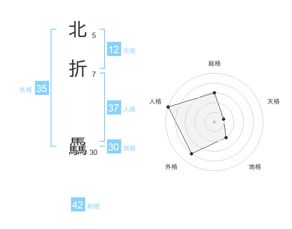 北折 驫さんの外格は35画の4点!