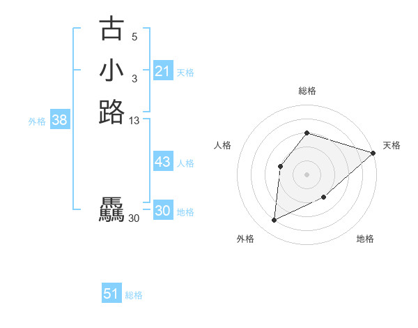 古小路 驫さんの総格は51画の3点!