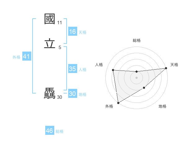 國立 驫さんの外格は41画の5点!