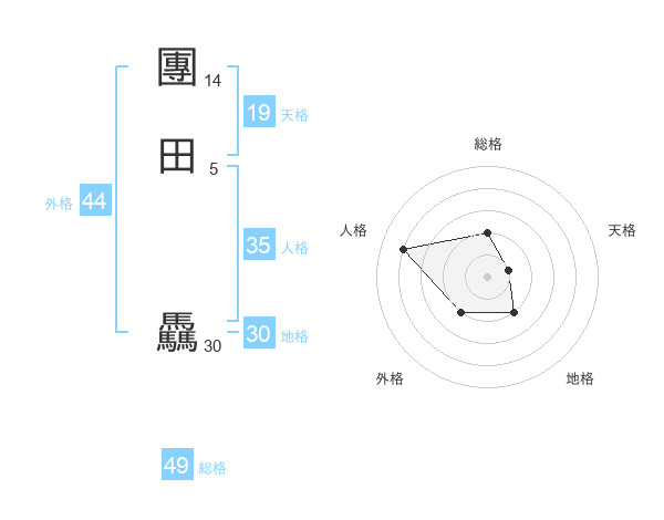 團田 驫さんの総格は49画の2点!
