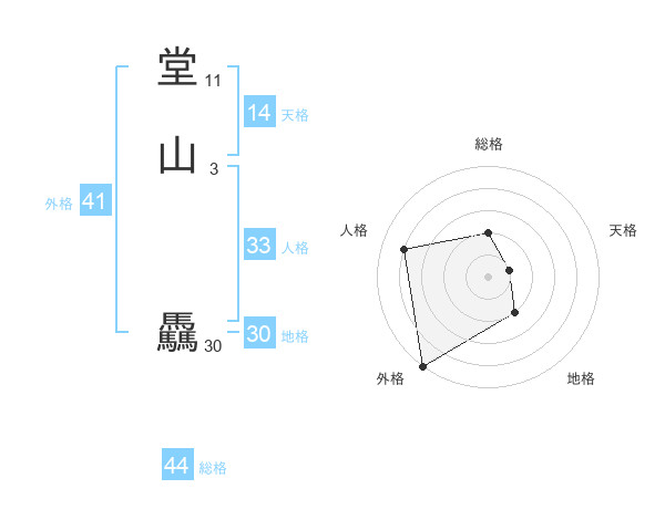 堂山 驫さんの総格は44画の2点!
