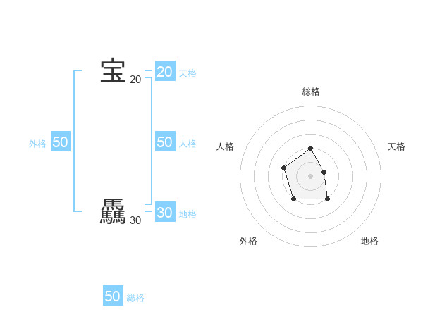 宝 驫さんの総格は50画の2点!