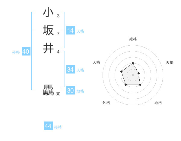 小坂井 驫さんの総格は44画の2点!