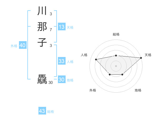 川那子 驫さんの天格は13画の5点!