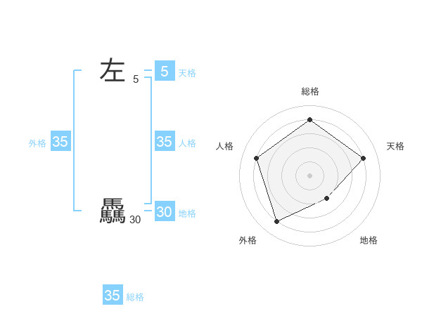 左 驫さんの総格は35画の4点!