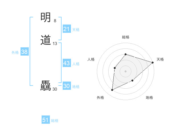 明道 驫さんの天格は21画の5点!