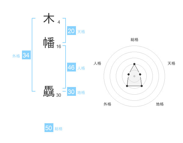 木幡 驫さんの天格は20画の1点!