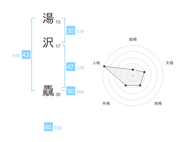 湯沢 驫さんを姓名の画数から五運を鑑定