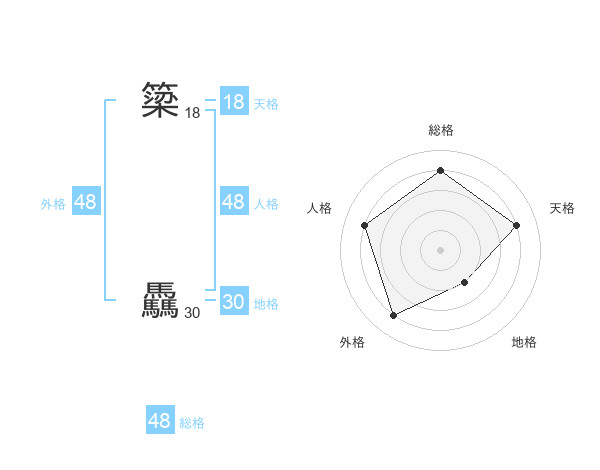 簗 驫さんの総格は48画の4点