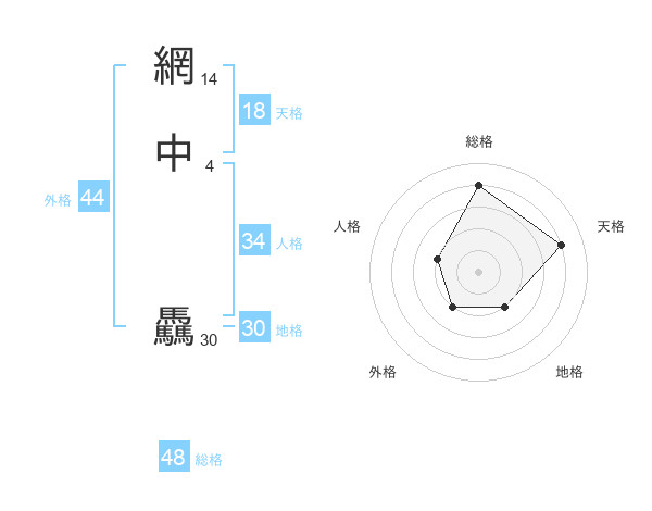 網中 驫さんの総格は48画の4点!