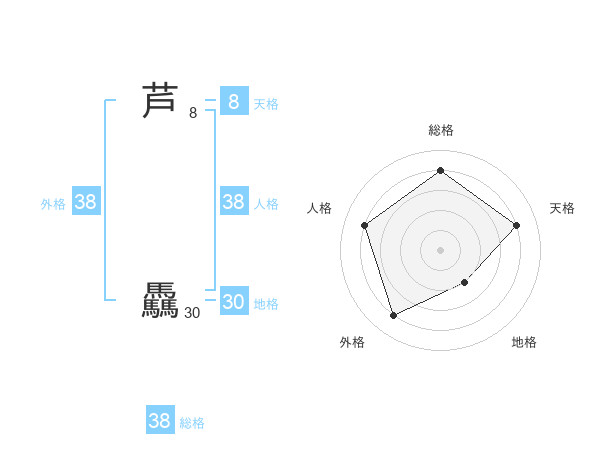 芦 驫さんの総格は38画の4点!