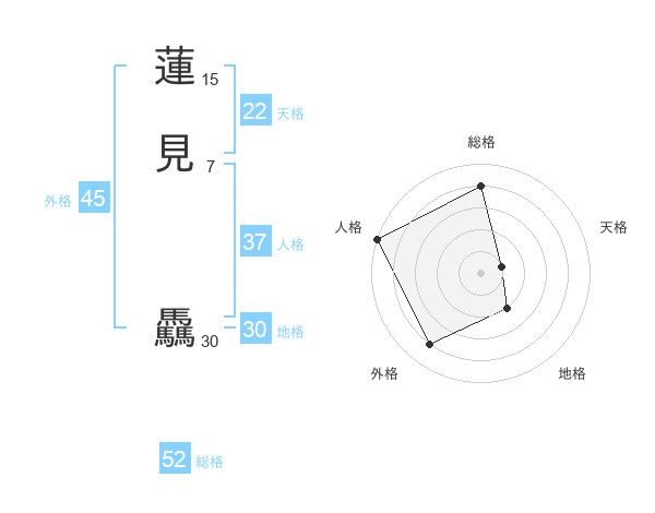 蓮見 驫さんを姓名の画数から五運を鑑定