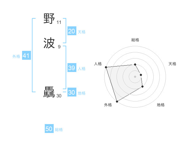 野波 驫さんの総格は50画の2点!