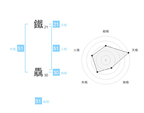 鐵 驫さんの外格は51画の3点!