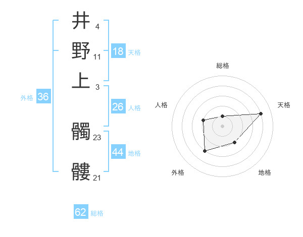 井野上 髑髏さんの天格は18画の4点!