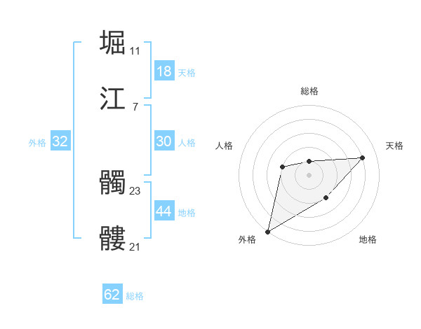 堀江 髑髏さんを姓名の画数から五運を鑑定