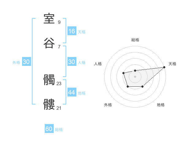 室谷 髑髏さんを姓名の画数から五運を鑑定