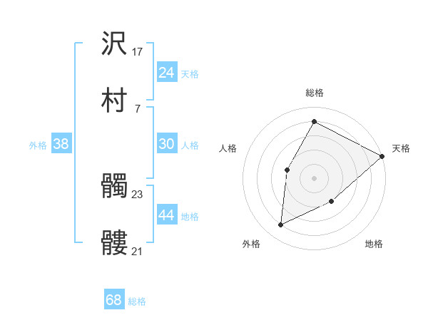 沢村 髑髏さんを姓名の画数から五運を鑑定