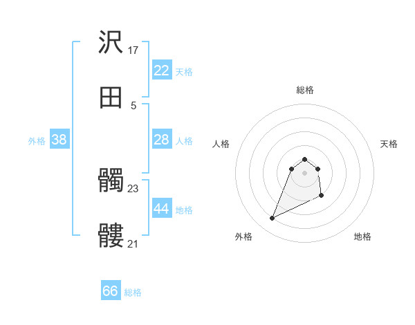 沢田 髑髏さんを姓名の画数から五運を鑑定