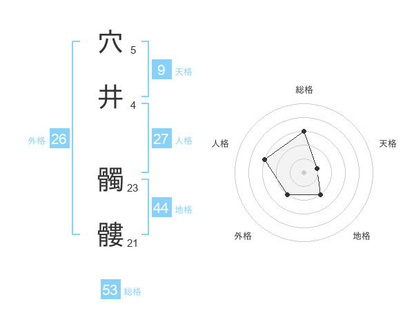 穴井 髑髏さんの総格は53画の3点!