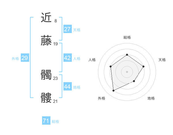近藤 髑髏さんを姓名の画数から五運を鑑定