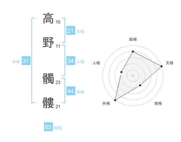 高野 髑髏さんの総格は65画の4点!