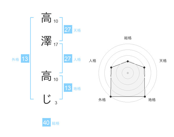 高澤 高じさんの外格は13画の5点!