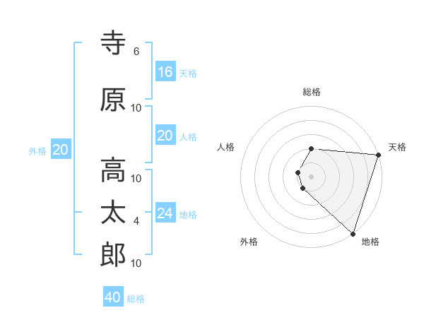寺原 高太郎さんの総格は40画の2点!
