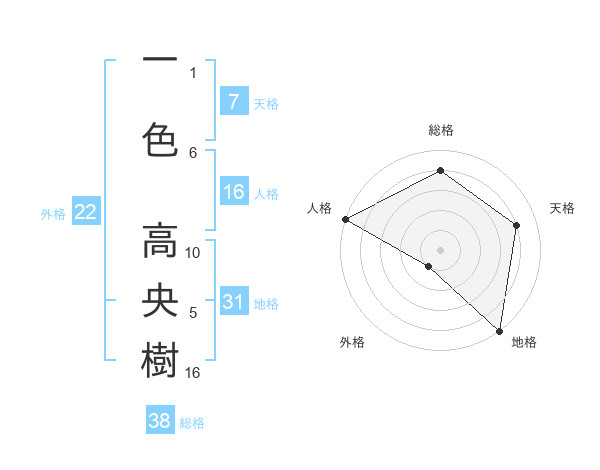 一色 高央樹さんを姓名の画数から五運を鑑定