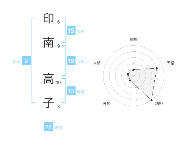 印南 高子さんの総格は28画の1点!