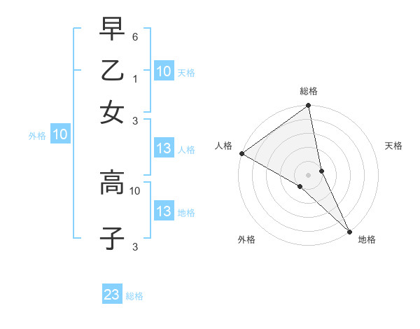 早乙女 高子さんを姓名の画数から五運を鑑定
