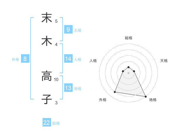 末木 高子さんの総格は22画の1点!
