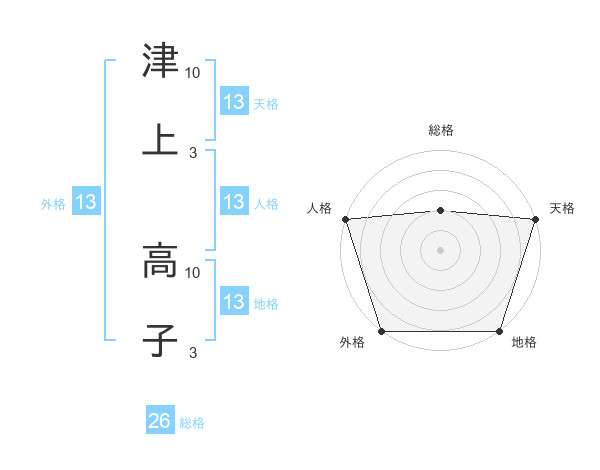 津上 高子さんの外格は13画の5点!
