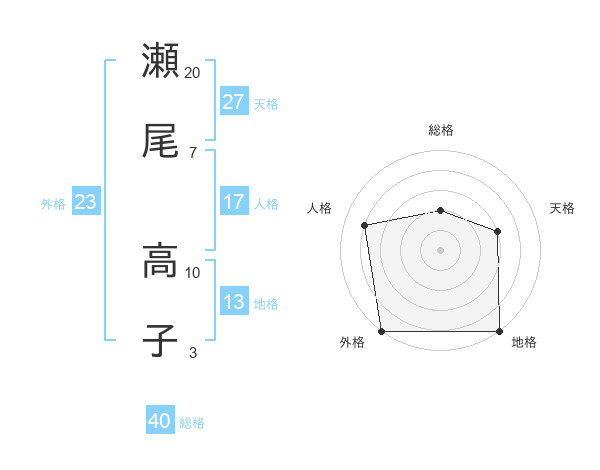 瀬尾 高子さんを姓名の画数から五運を鑑定
