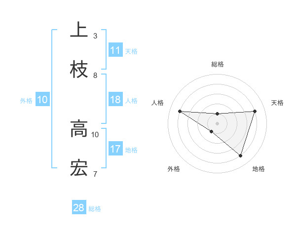 上枝 高宏さんを姓名の画数から五運を鑑定