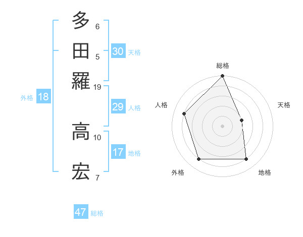 多田羅 高宏さんの総格は47画の5点!