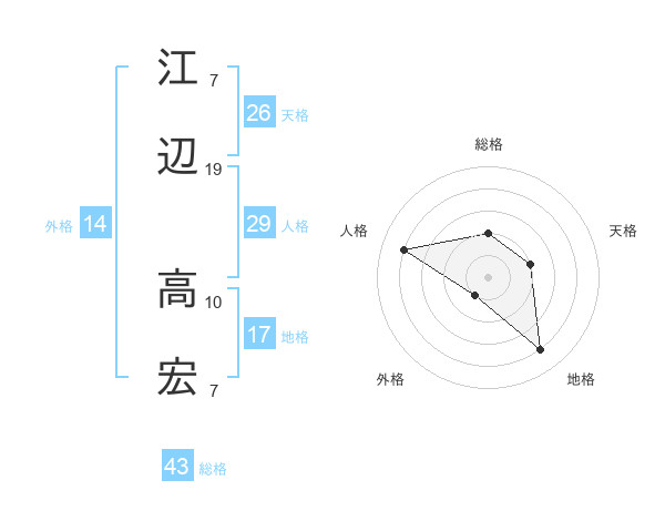 江辺 高宏さんの総格は43画の2点!