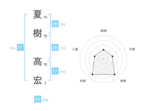 夏樹 高宏さんを姓名の画数から五運を鑑定