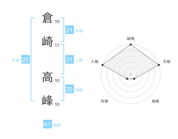倉崎 高峰さんの天格は21画の5点!