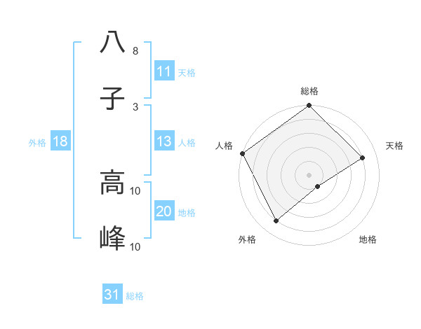 八子 高峰さんの総格は31画の5点!
