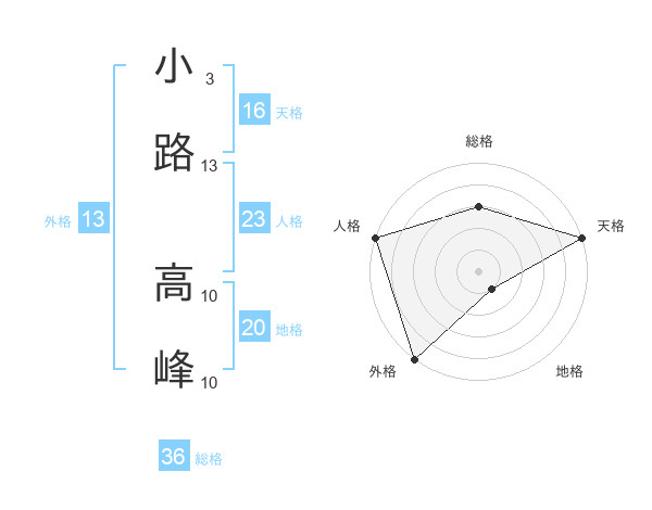 小路 高峰さんの外格は13画の5点!
