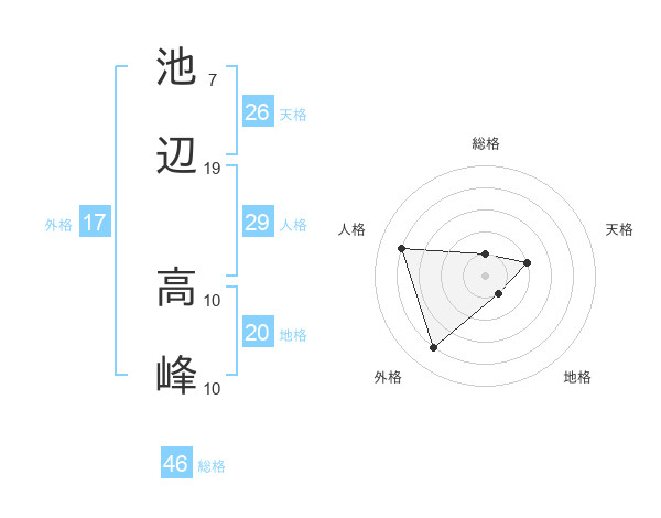 池辺 高峰さんを姓名の画数から五運を鑑定